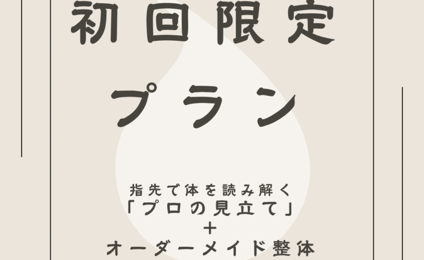 【初回限定プラン刷新】5万人の実績に基づく「プロの見立て」+オーダーメイド整体のご案内